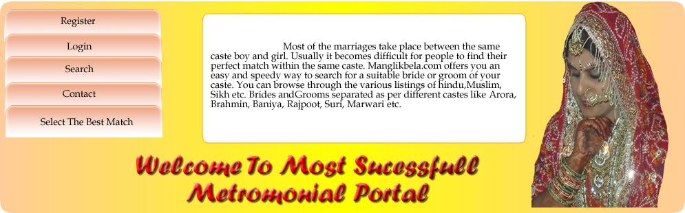Not to worry! If you are the one facing same issue, then simply come and register at Manglikbela.com. Manglikbela.com is India's most trusted and renowned Matrimonial portal, offering excellent matchmaking services for people belonging to different religions. The portal has been serving as an efficient matrimony portal having thousands of genuine profiles of prospective brides and grooms. This Matrimonial Portal is a platform; bringing together Singles belonging to different caste, mother tongue etc.